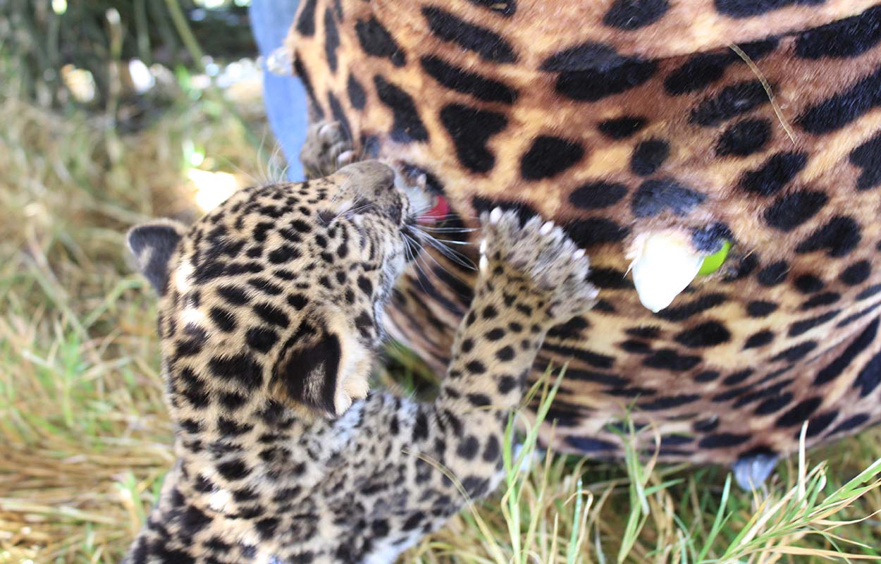 Nuestros proyectos, logros y esfuerzos provocaron que en octubre del 2016, fuésemos seleccionados a nivel nacional por las autoridades federales, en este caso la Comisión Nacional de Áreas Naturales Protegidas para recibir en calidad de contingencia nacional a dos hembras de jaguar de tan solo 20 días de nacidas encontradas huérfanas en la Reserva de la Biosfera de Calakmul, en Campeche, comenzando así con la elaboración del primer proyecto a nivel mundial de liberación de dos jaguares a vida libre que serán criadas en cautiverio bajo una metodología especializada desarrollada por nosotros, para estimular las conductas naturales y suplir los aprendizajes y también las necesidad que tendrían con la madre en instalaciones específicamente creadas en función de sus requerimientos biológicos; instalaciones que no tienen contacto físico ni visual con el ser humano, siendo monitoreadas a través de torres de observación y cámaras espías.