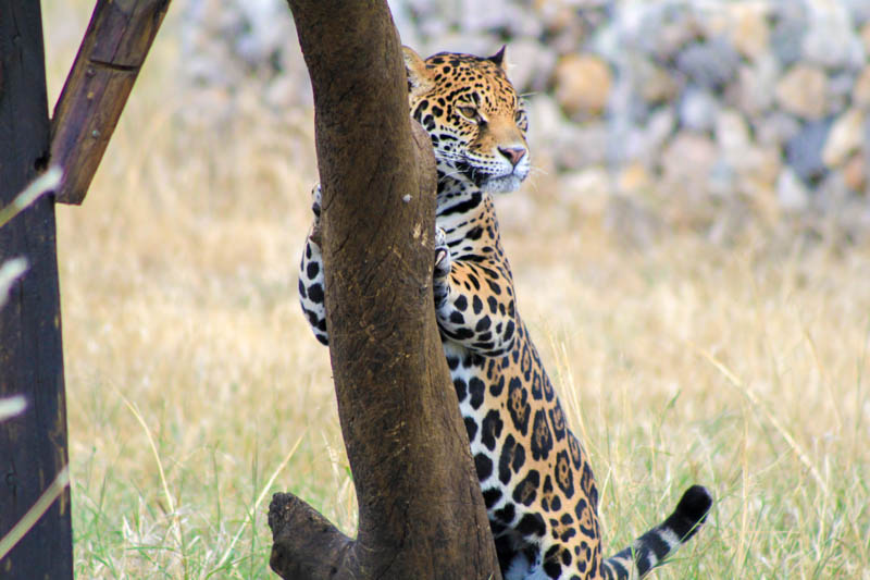 Como dato interesante, Zelda posee en su brilloso y dorado pelaje, rosetas muy marcadas, con bastante pigmentación y en formas geométricas, lo que la hace muy vistosa además de tener un tamaño muy grande en promedio con otros jaguares.