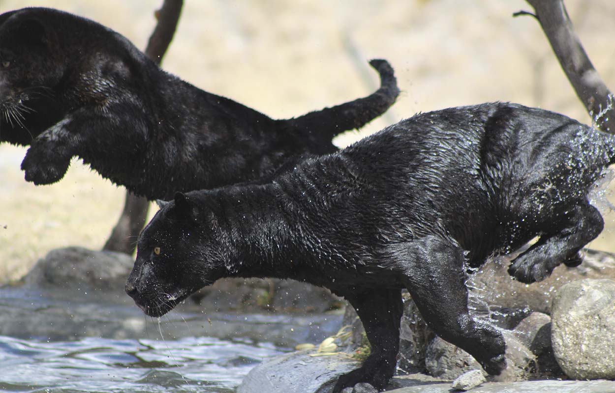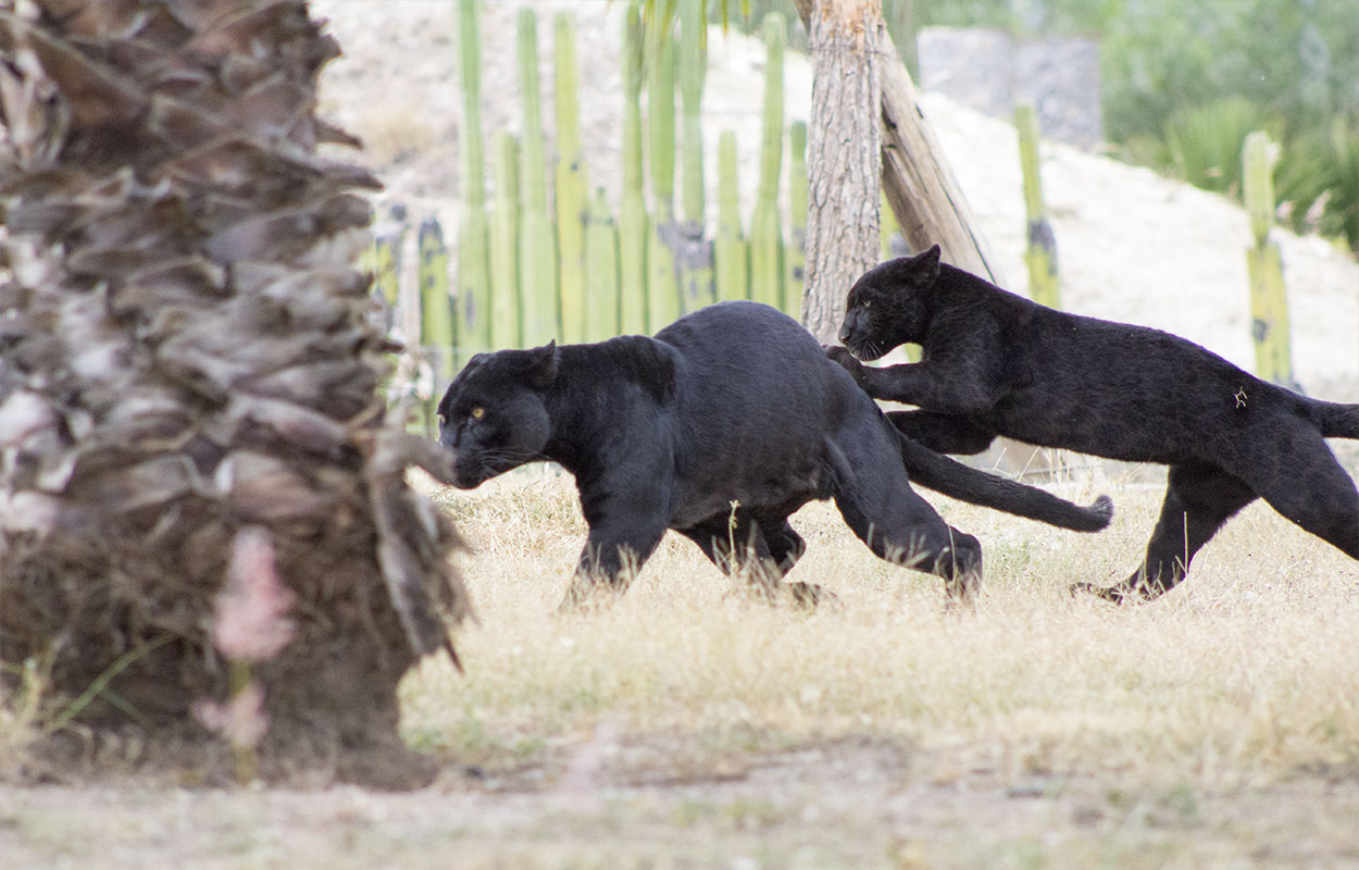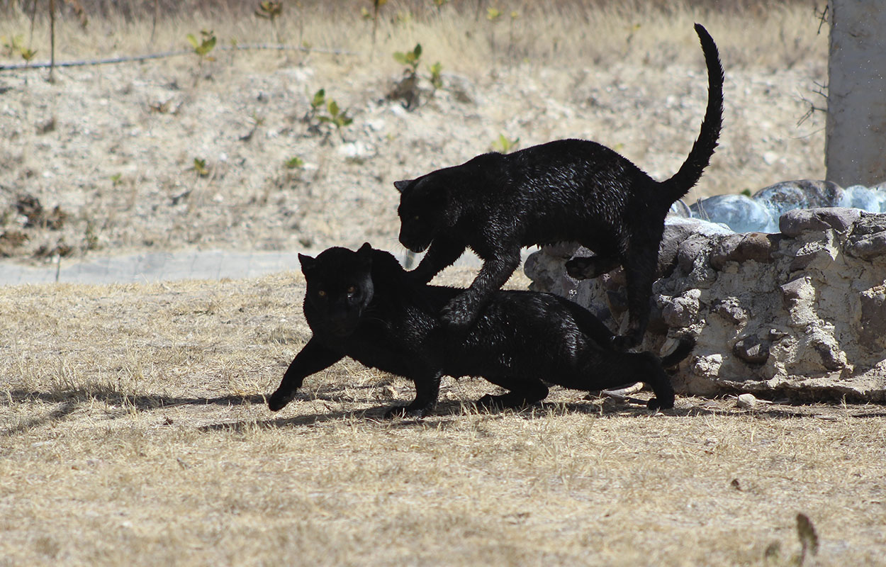 El proyecto Andrómeda, es el primer programa de crianza natural sin contacto físico humano que pretende encontrar los estímulos correctos para el desarrollo del código de conducta natural de esta particular familia de 2 hembras de jaguares melánico.